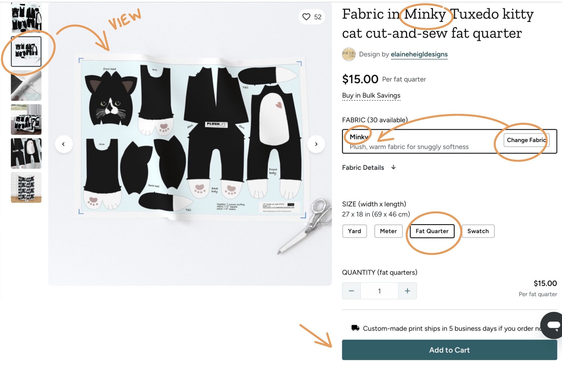 In the Plush Life shop, tap the button for the design you’d like to make. This opens the Spoonflower listing for that specific cut-and-sew panel.